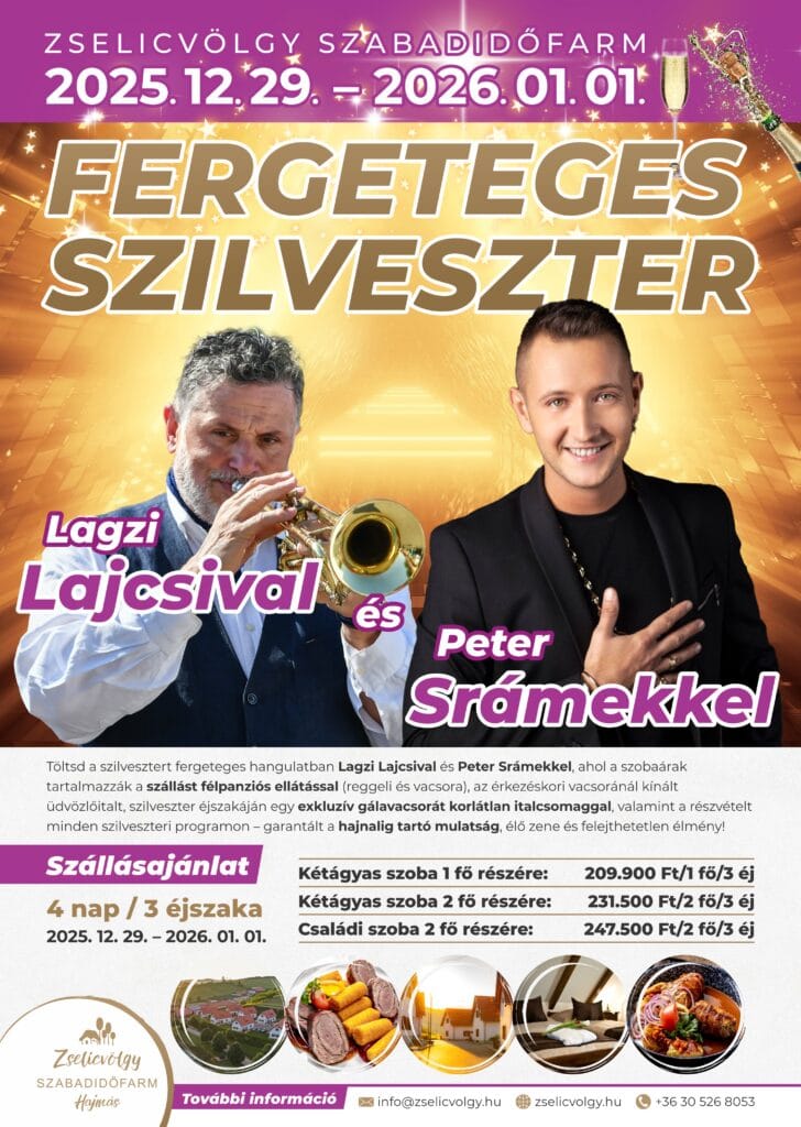 Töltsd a Szilvesztert fergeteges hangulatban Lagzi Lajcsival és Peter Srámekkel, ahol a szobaárak tartalmazzák a szállást félpanziós ellátással (reggeli és vacsora), az érkezéskori vacsoránál kínált üdvözlőitalt, Szilveszter éjszakáján egy exkluzív gálavacsorát korlátlan italcsomaggal, valamint a részvételt minden szilveszteri programon – garantált a hajnalig tartó mulatság, élő zene és felejthetetlen élmény!
